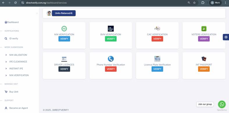 The website further offers verification of voter cards, international passports, CAC records, driver’s licences, and vehicle plate numbers.