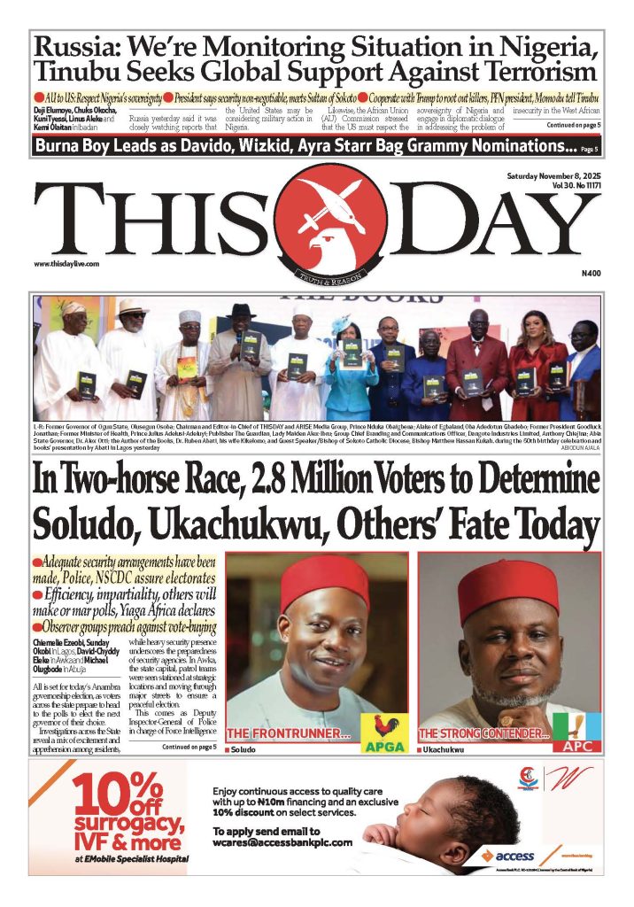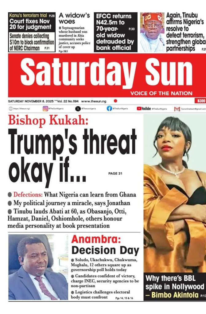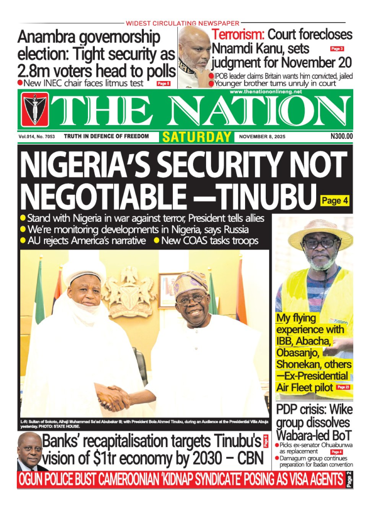 FRONT PAGES: Nigerian Newspapers – 08 November 2025 November 8, 2025 Share: Bookmark this story Save For Later Join Our Community to get Live Updates Join our WhatsApp Channel Follow our Telegram Channel Related Posts FRONT PAGES: Nigerian Newspapers – 06 MAY 2024 FRONT PAGES: US Newspapers – 24 June 2025 Nigerian News: Morning Headlines – 13 October 2025