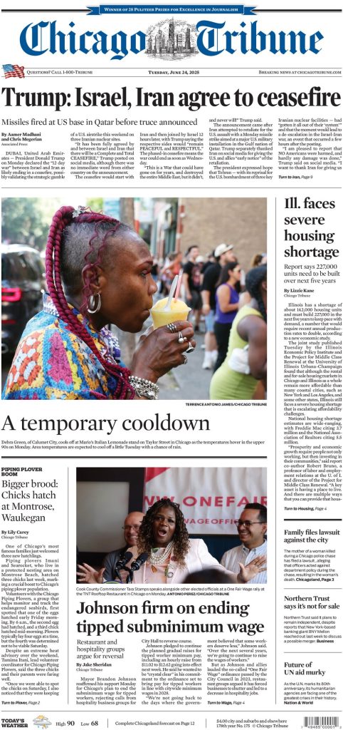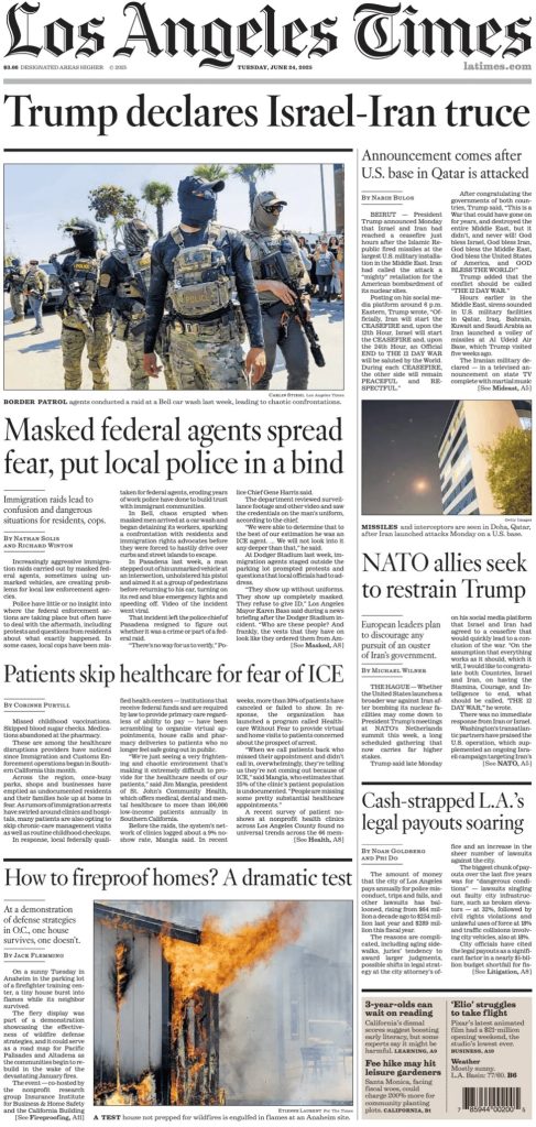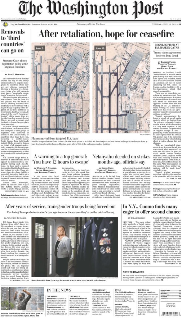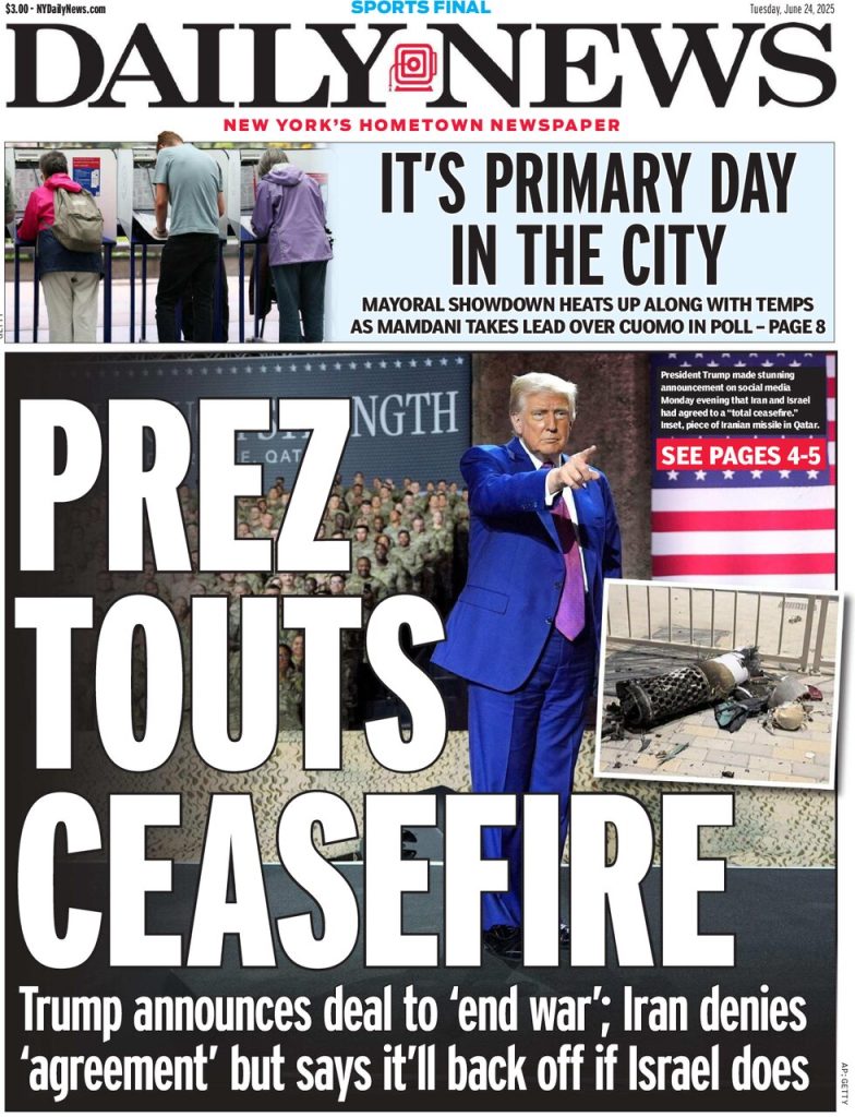 FRONT PAGES: US Newspapers – 24 June 2025 June 24, 2025 Share: Bookmark this story Save For Later Join Our Community to get Live Updates Join our WhatsApp Channel Follow our Telegram Channel Related Posts FRONT PAGES: US Newspapers – 20 April 2025 FRONT PAGES: US Newspapers – 22 JUNE 2025 FRONT PAGES: Nigerian Newspapers – 19 MAY 2024