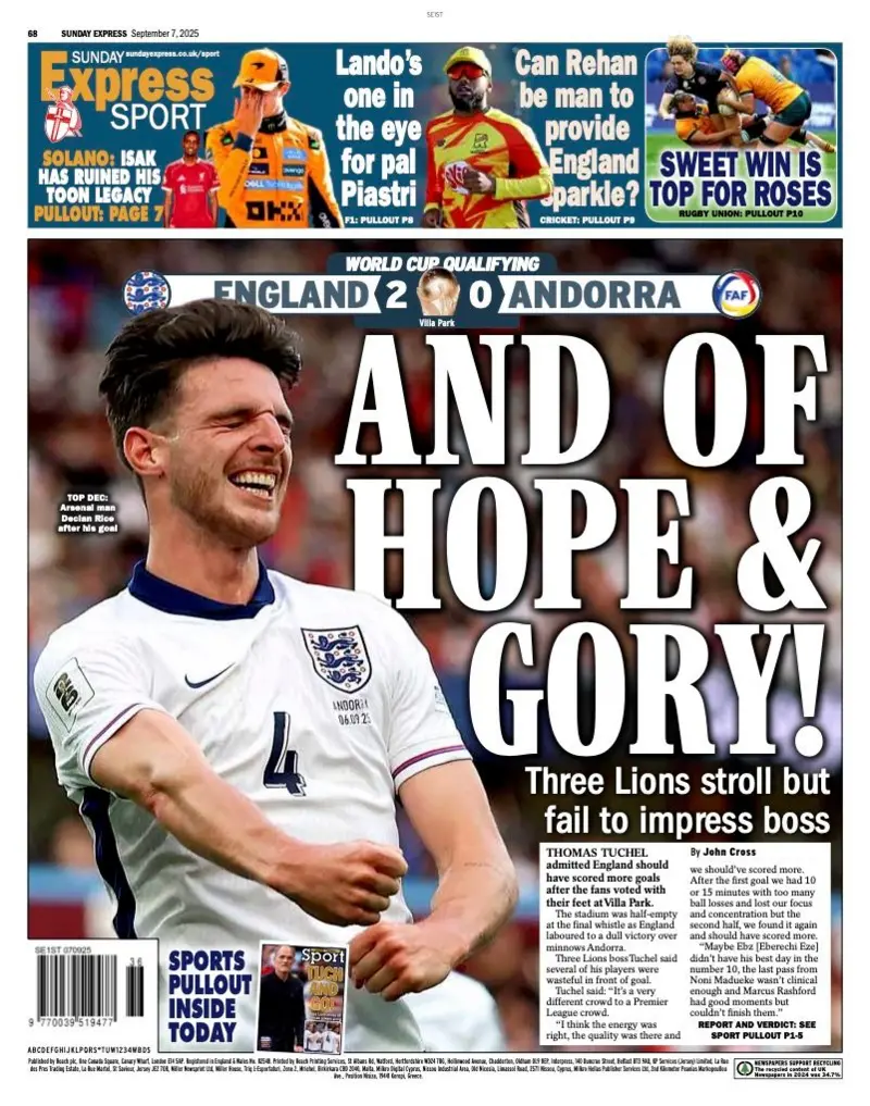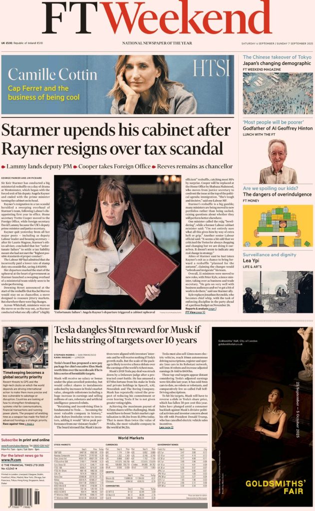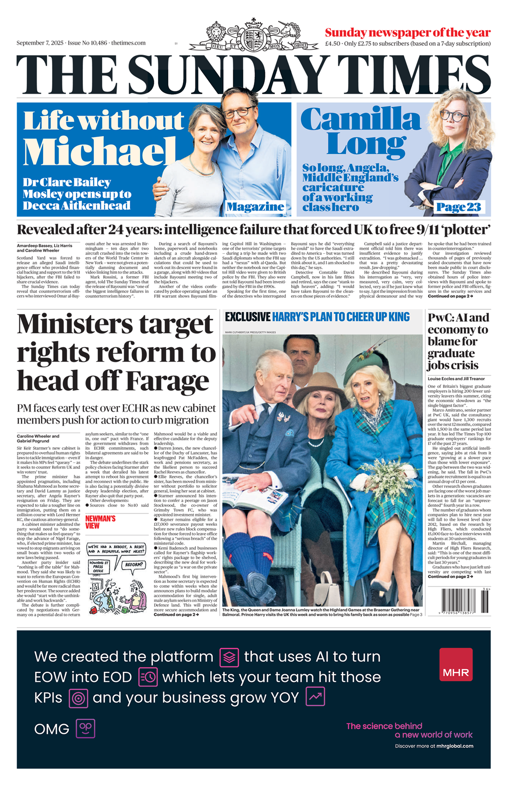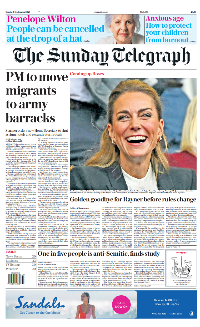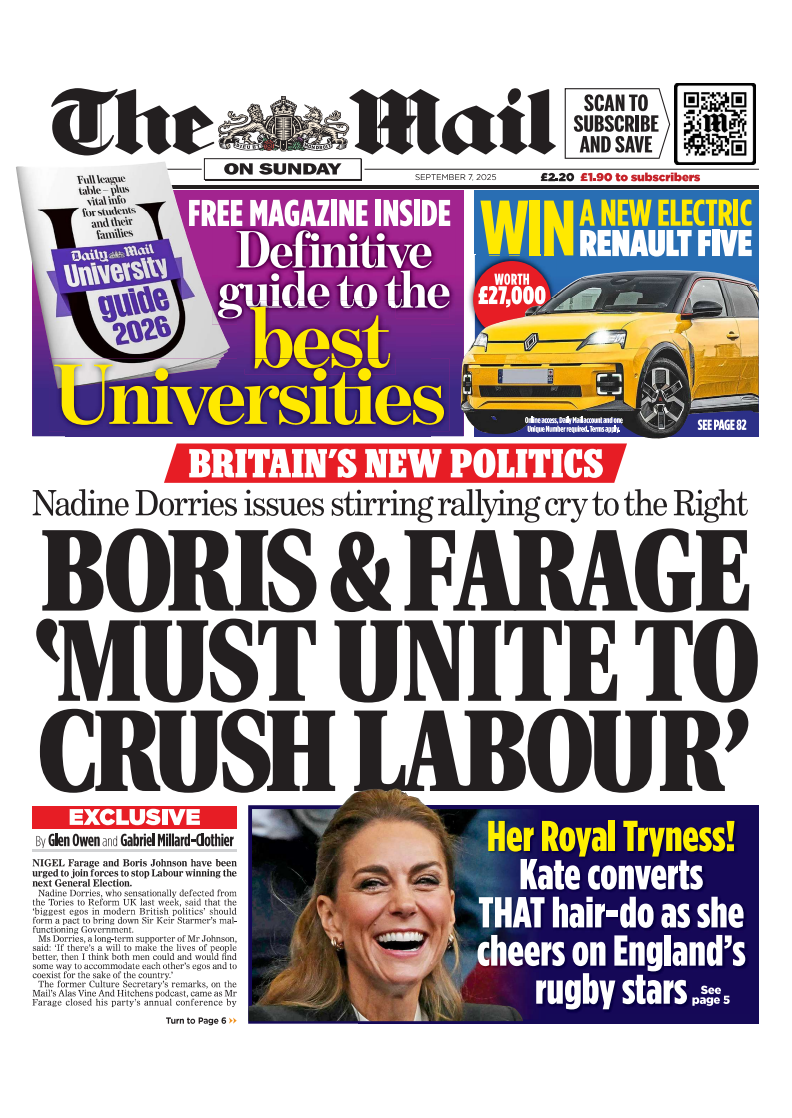 Sunday’s UK newspaper front & back pages: 7 September 2025
