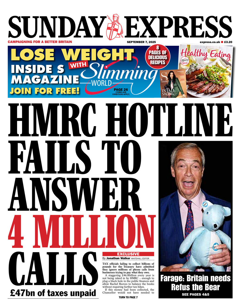 The Sunday Express claims HMRC officials have “admitted they ignore millions of phone calls” from businesses wanting to pay their tax.