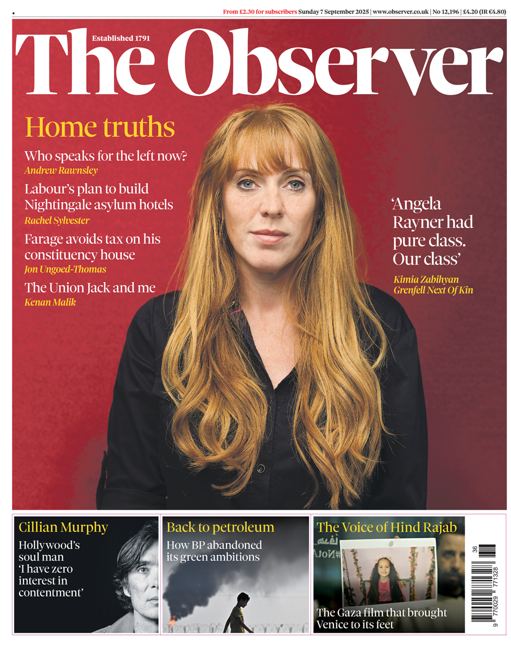 The Observer’s front page features a picture of former deputy prime minister Angela Rayner, who resigned on Friday after admitting she did not pay the right amount of stamp duty when she bought her house in Hove.