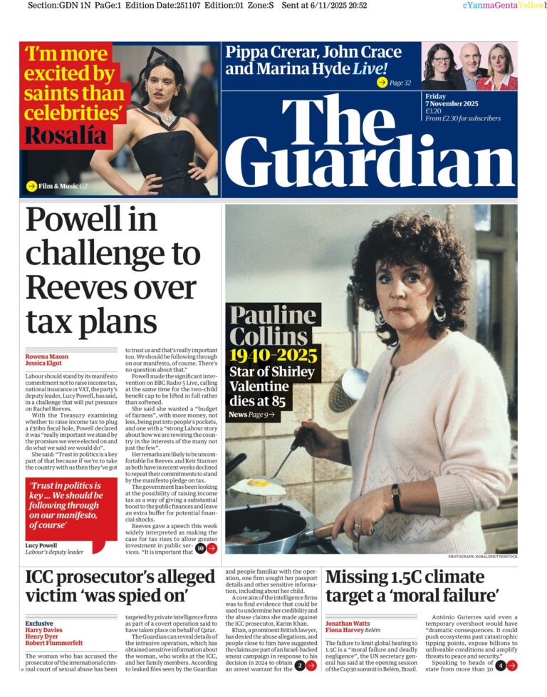 Saturday’s UK newspaper front & back pages – 22 November 2025
