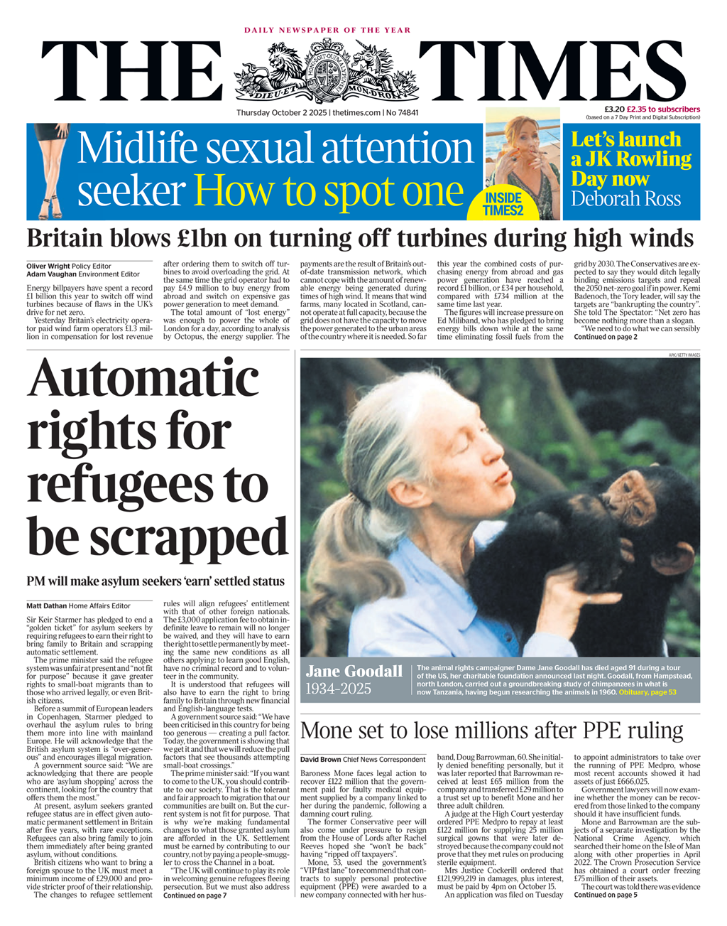 The Sun leads on the Baroness Mone story, saying there are calls to strip her of her peerage.