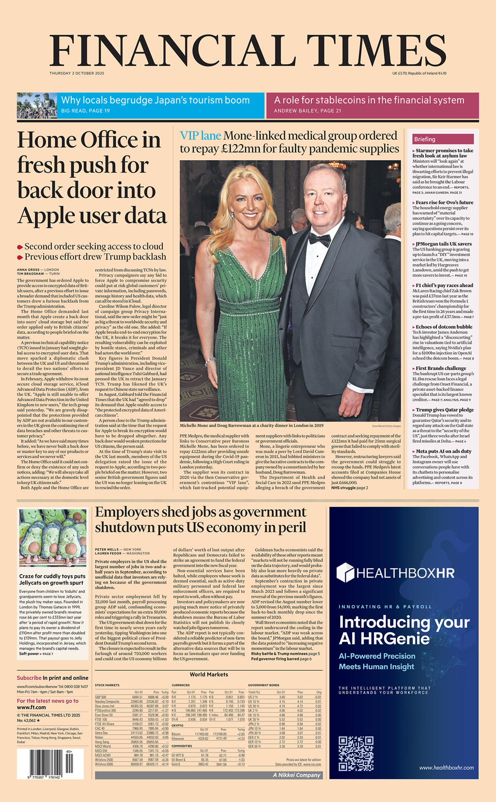 The Financial Times reports on efforts by ministers to force Apple to allow access to British users’ encrypted data.