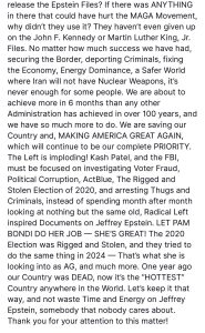 Why didn’t these Radical Left Lunatics release the Epstein Files? If there was ANYTHING in there that could have hurt the MAGA Movement, why didn’t they use it? They haven’t even given up on the John F. Kennedy or Martin Luther King, Jr. Files.