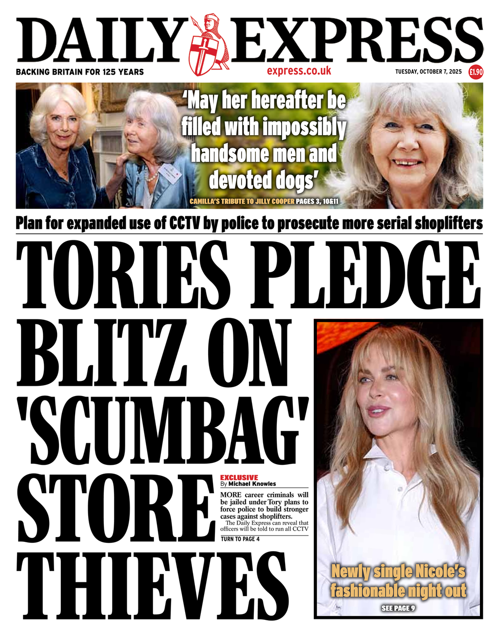 A pledge by the Tories to take action against shoplifters is the top story in the Daily Express.