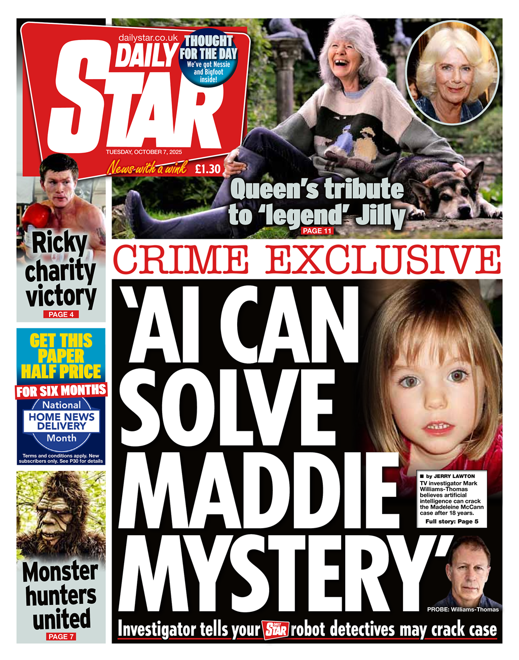 The Daily Star’s lead story is claims that AI could help solve the mystery of Madeleine McCann’s disappearance.